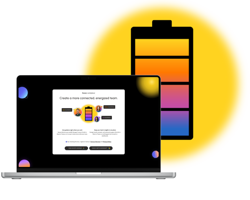 Sunny Workplace™ helps teams connect and stay energized—reducing burnout, strengthening trust, and unlocking their best work. When people thrive, culture and performance follow.